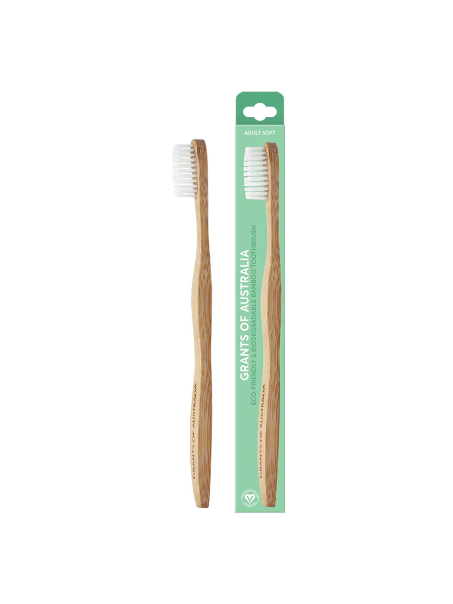 Grants Biodegradable Bamboo Toothbrush is a sustainable choice for your daily routine, with handles made from 100% biodegradable, eco-friendly bamboo. The nylon bristles can be removed and recycled, while the bare bamboo handle can be composted to safely return to the soil.