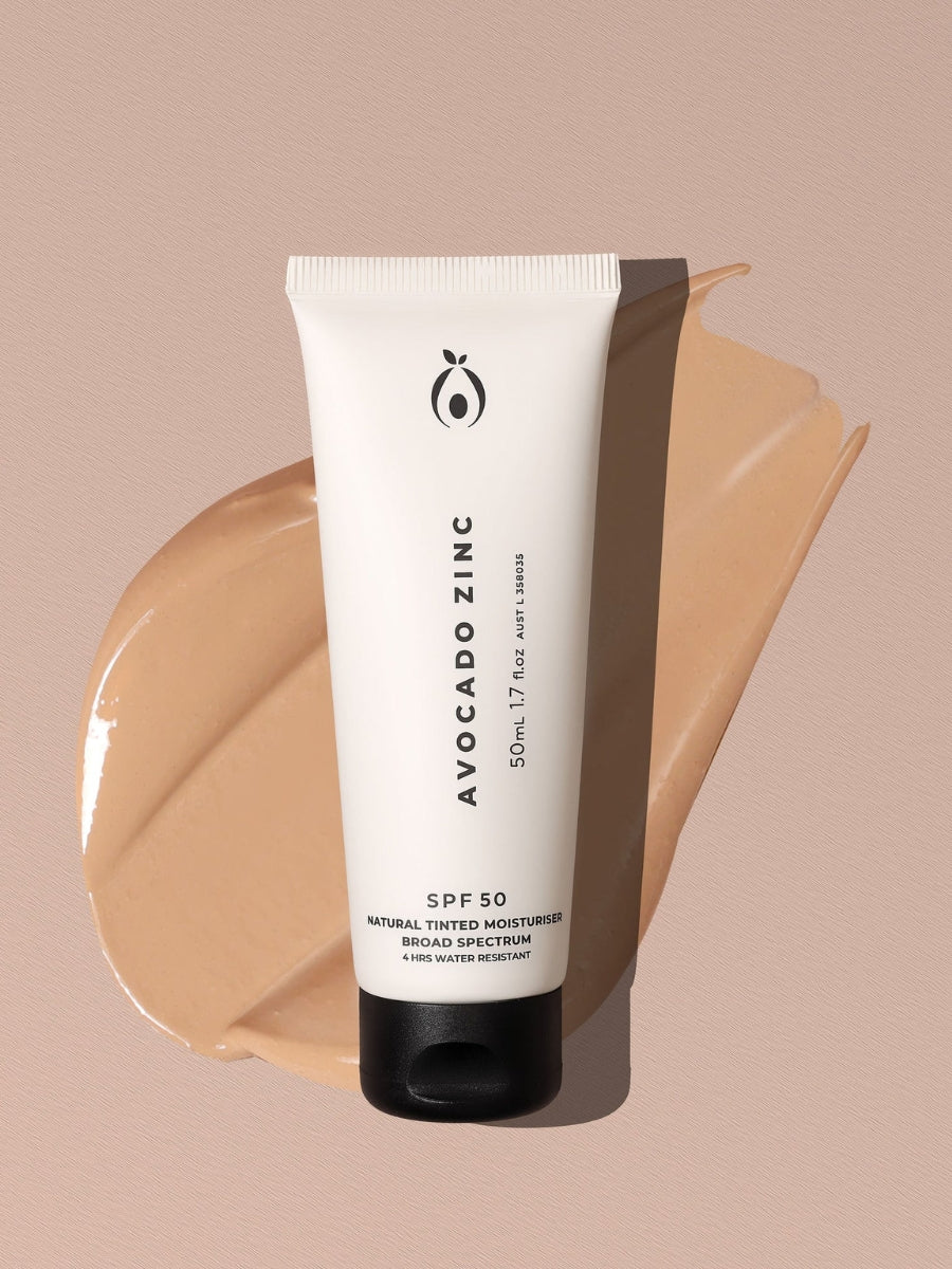 Avocado Zinc Tinted Moisturiser SPF 50 is a 100% natural, mineral-based formula that protects, hydrates, and evens skin tone with light, breathable coverage. Enriched with non-nano zinc oxide, avocado oil, coconut oil, and vitamin E, it leaves a dewy finish without clogging pores or causing irritation. Australian made and TGA Registered (AUST L 358035), this multitasking daily base is suitable for all skin types, including sensitive skin, pregnancy, and breastfeeding.